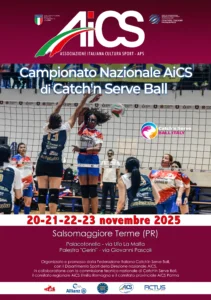 La Federazione Italiana Catch’n Serve Ball, la Direzione Nazionale AiCS – Dipartimento Sport in collaborazione con la competente commissione tecnica nazionale di Catch’n Serve Ball, il Comitato Regionale AiCS Emilia Romagna e con l’organizzazione tecnica del Comitato Provinciale AiCS di Parma, organizza dal 20 al 23 novembre prossimi il Campionato Nazionale di Catch’n Serve Ball che si disputerà al Palacotonella di via Ugo La Malfa e nella Palestra Giovanni Gerini di via Giovanni Pascoli a Salsomaggiore Terme (PR).